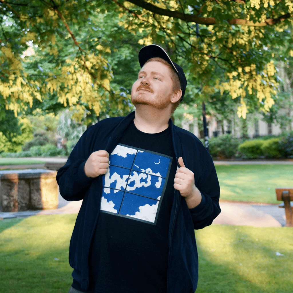 Her’s screenprinted Night Tee in Black. Gildan heavy, classic fit, seamless twin needle collar and tubular body. 100% cotton.