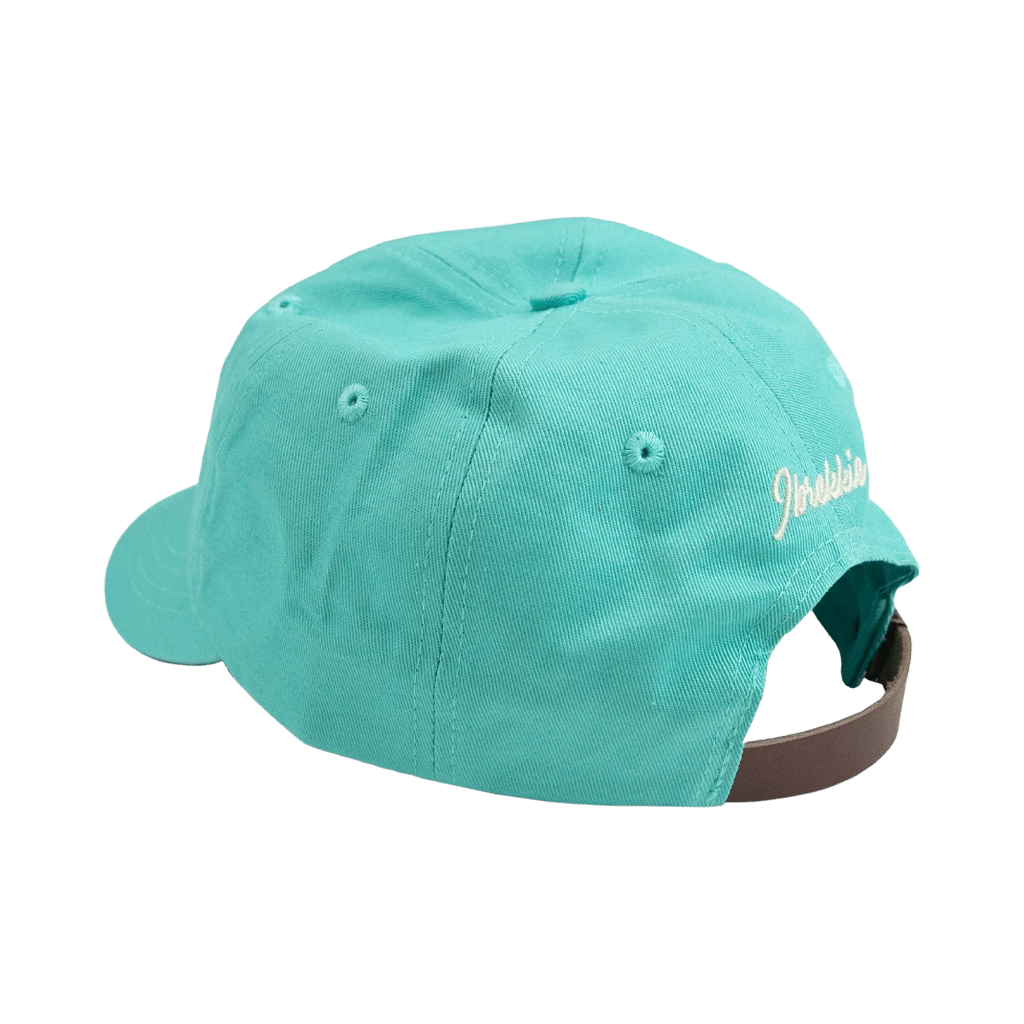 - Teal dad hat with synthetic leather adjustable strap