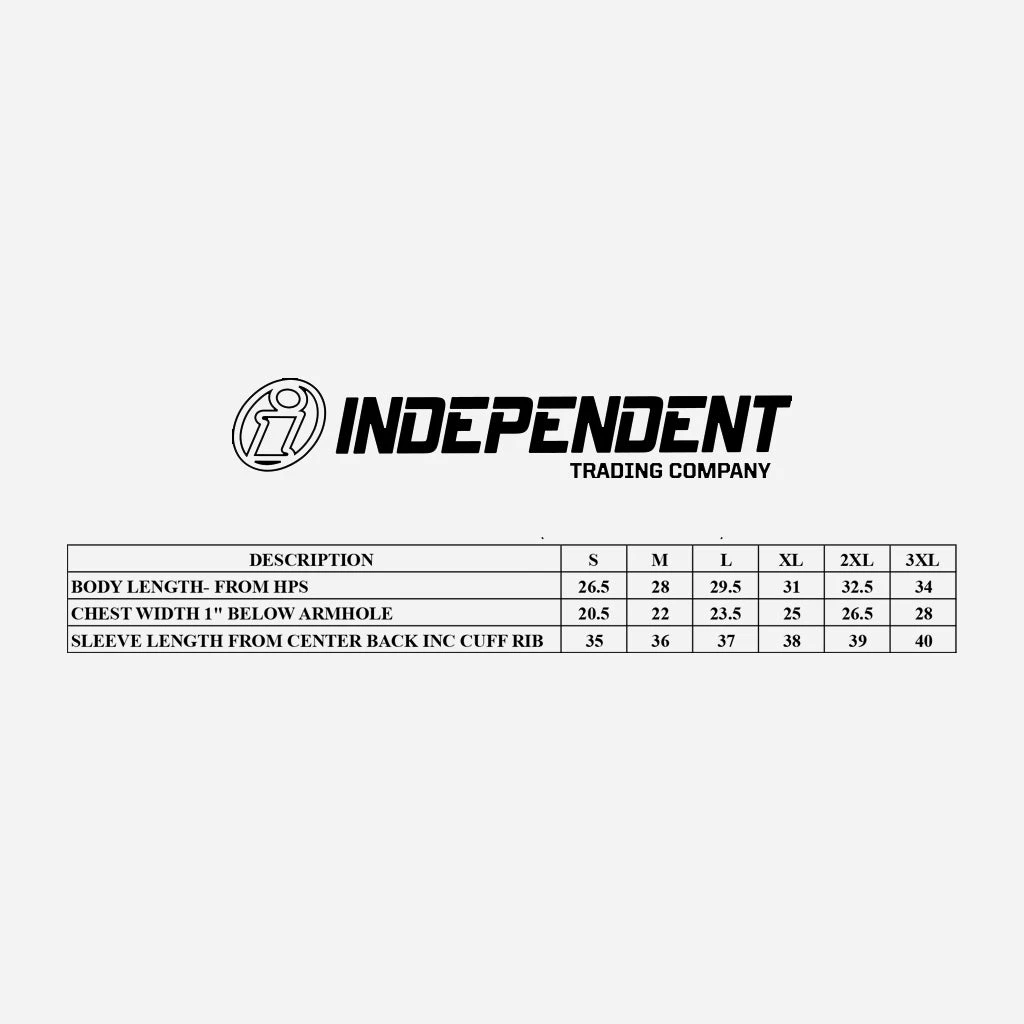 Printed on Independent Trading Co., poly/cotton blend.