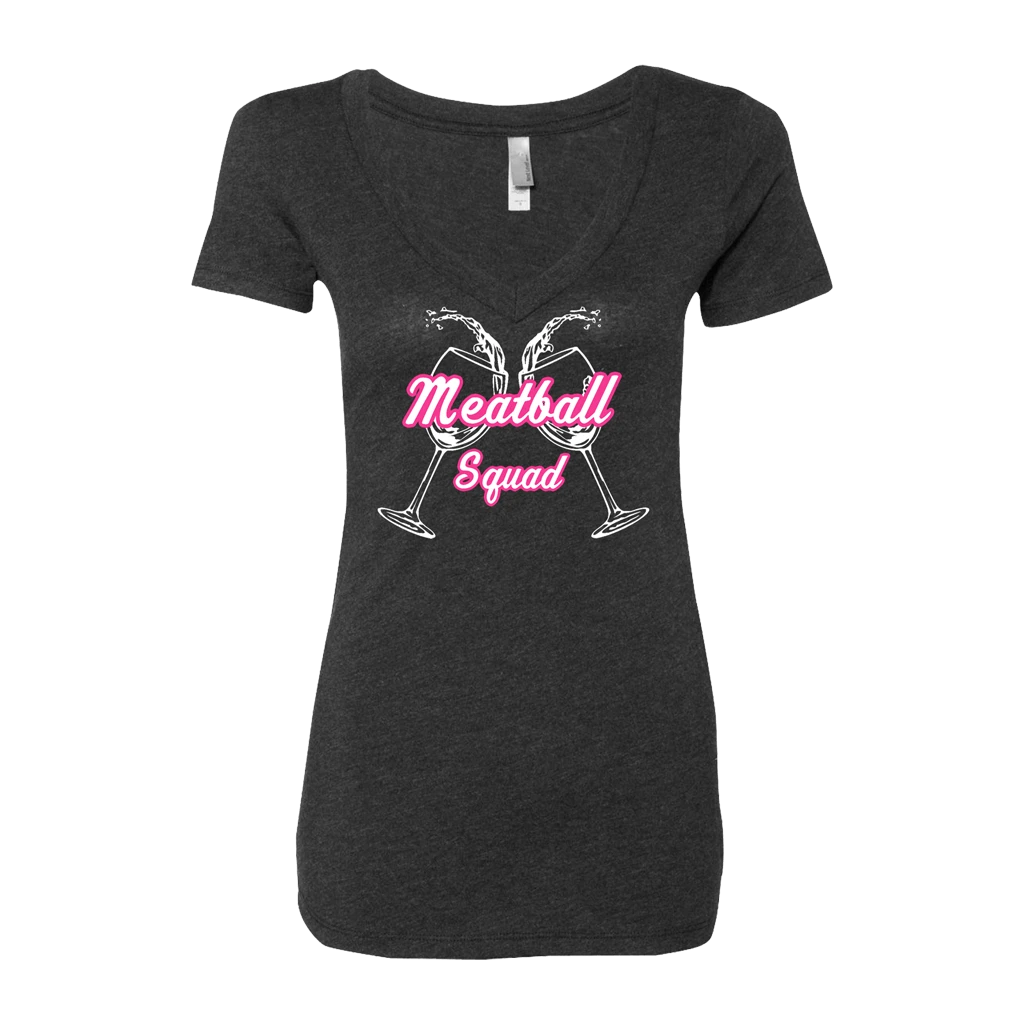 Meatball Merch Meatball Squad Wine Glasses Women’s V-Neck New Merch