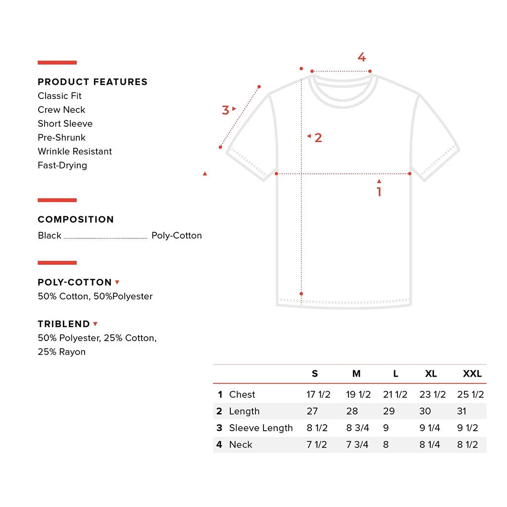 Printed on Kingsted premium fabric combining cotton’s comfort & freshness with softness & smoothness from polyester. The finish is a Wrinkle Resistant, Fast-Drying and Ultra-Durable t-shirt!