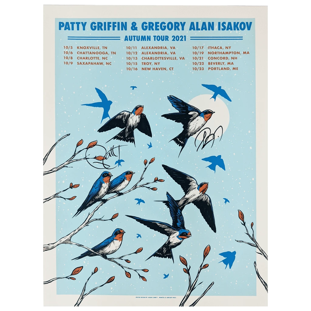 Hand silkscreened tour poster on heavy tag stock is approximately 18″ x 24″