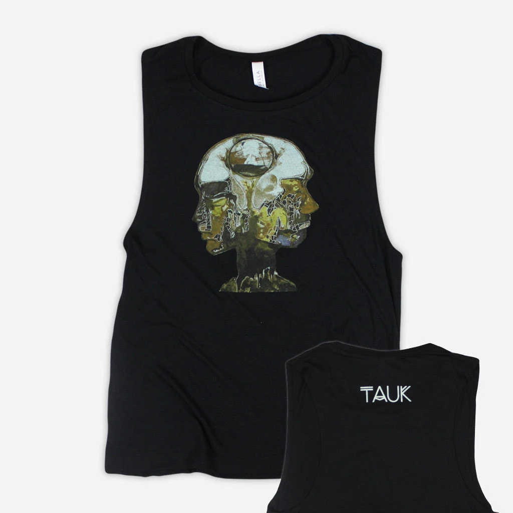 TAUK Heads Womens Black Flowy Scoop Muscle Tee