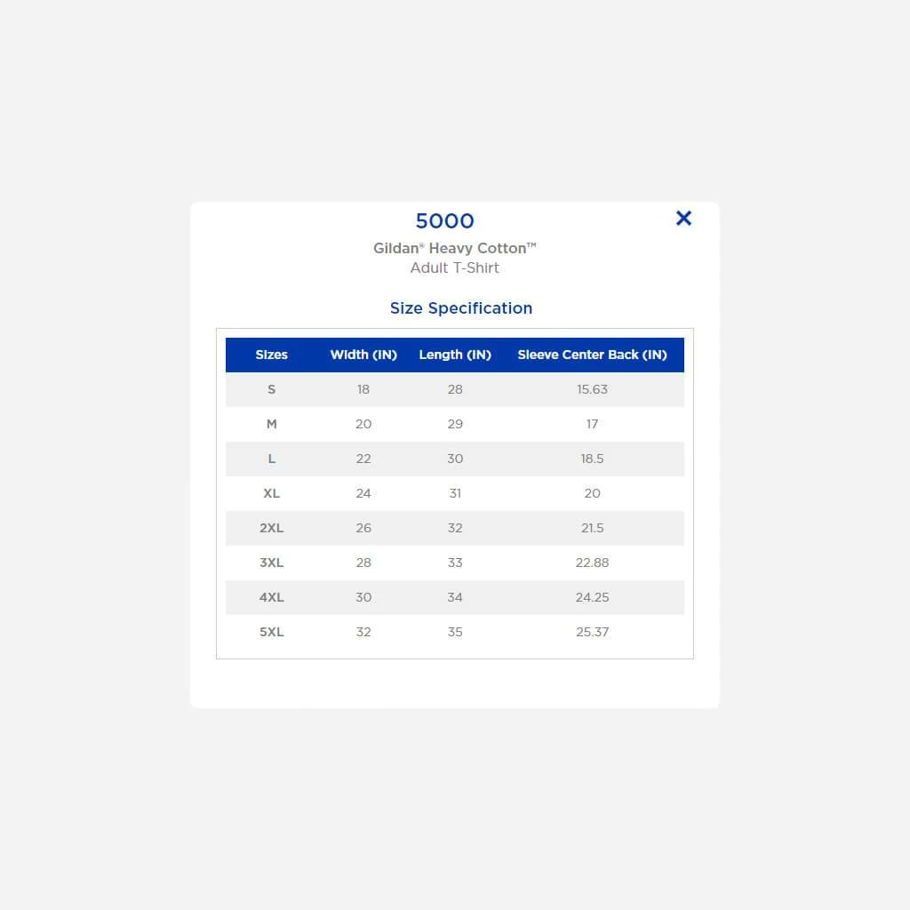 Printed on Gildan, 100% Cotton.