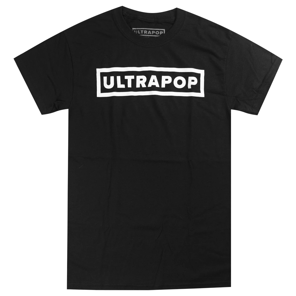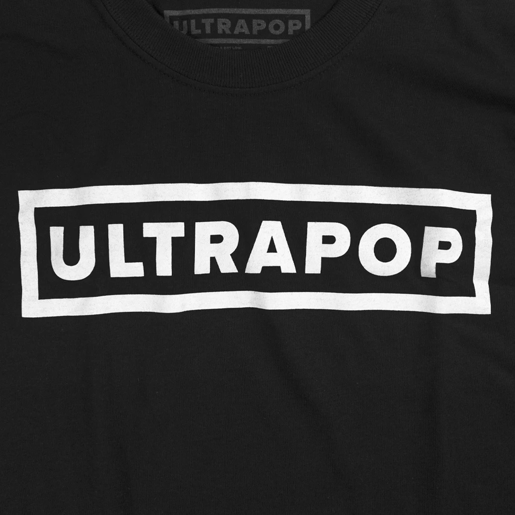 Iconic ULTRAPOP logo emblazoned on a standard cotton tee. Available in black and white.